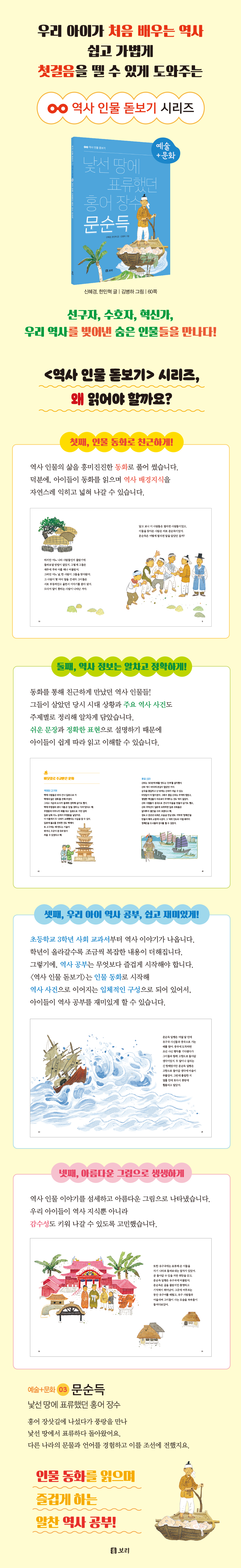 우리 역사를 빚어낸 숨은 인물들을 만나는 <역사 인물 돋보기: 예술+문화> 시리즈입니다. 흥미진진한 인물 동화를 통해 어린이들이 역사 공부 첫걸음을 쉽고 가볍게 뗄 수 있도록 도와줍니다. 시리즈 세 번째 책에서는 우리나라의 예술과 문화를 다채롭게 만든 인물 가운데 조선에서 처음으로 두 번이나 다른 나라 땅에서 표류하고 돌아온 문순득을 소개합니다.