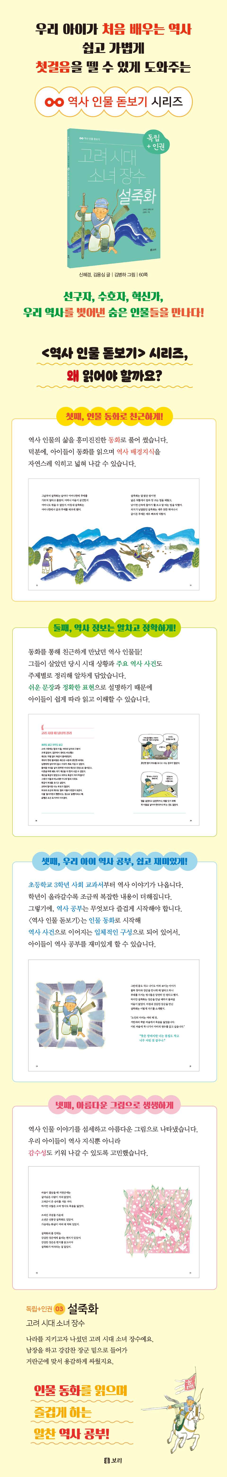 보리에서 펴내는 역사 시리즈 <역사 인물 돋보기>는 이름난 위인이 아니라, 우리 역사의 구석구석을 빚어낸 숨어 있는 인물들을 소개하는 책입니다. 저학년 눈높이에 맞춘 흥미진진한 인물 동화로 초등학생들이 처음 배우는 역사를 쉽고, 가볍게 접할 수 있도록 도와줍니다. 쉬운 우리말로 들려주는 ‘인물 이야기’는 어린이들이 아직은 낯선 역사 인물에게 친밀함과 공감대를 형성하게 해 줍니다.