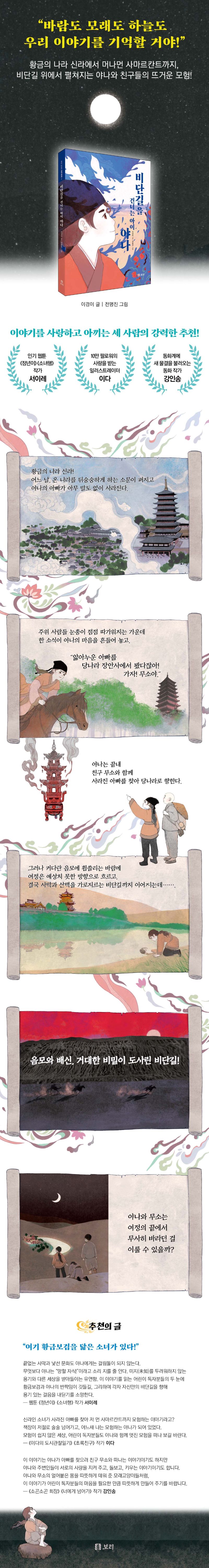 <바리데기> <그림형제 민담> 같은 오래된 설화, 민담부터 《사자왕 형제의 모험》 《나니아 연대기》 <해리포터> 시리즈 같은 오늘날 동화에 이르기까지 모험 이야기는 늘 세대를 막론하고 모두의 가슴을 두근거리게 하는 힘을 갖고 있다. 일상에서 쉽게 느낄 수 없는 짜릿함, 고난을 넘어서는 진한 감동을 선사하기 때문일 것이다. 《비단길을 건너는 아이 야나》는 그러한 모험과 성장 이야기의 진면목을 느끼게 하는 수작이다. 작가는 유려한 문장과 촘촘한 구성을 바탕으로 신라에서 저 먼 사마르칸트까지 이어지는 야나와 친구들의 여정을 매끄러운 비단처럼 펼쳐 보인다.